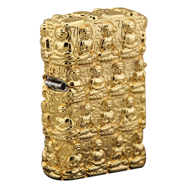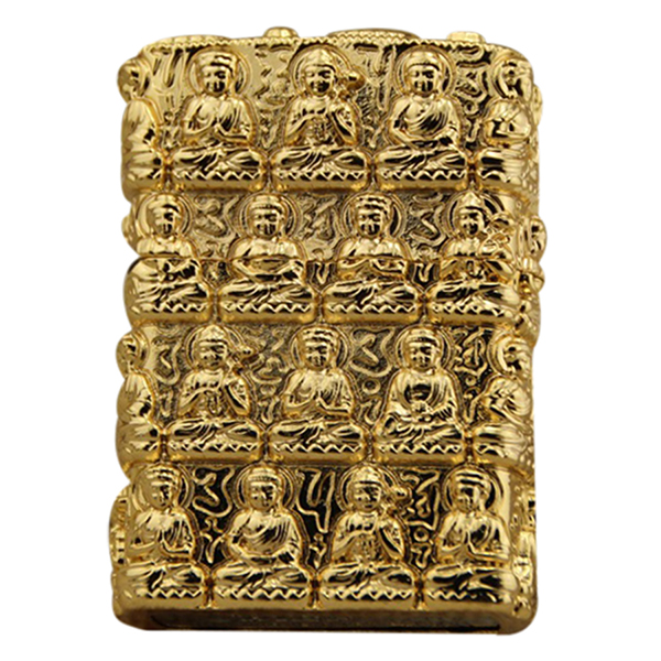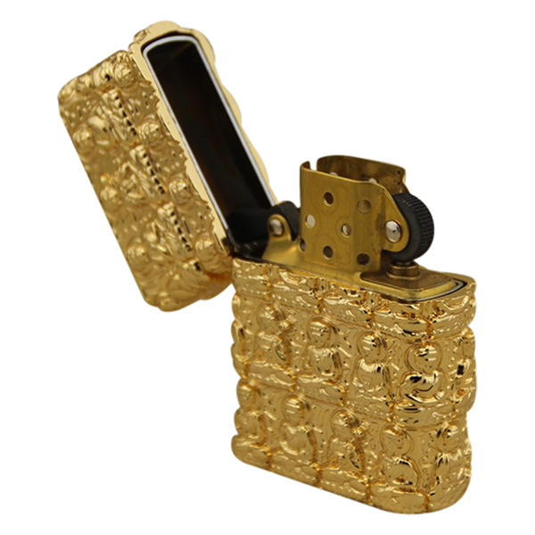 - Bật Lửa Khắc Phật Vàng - bật lửa dùng xăng zippo hoặc dầu hỏa. Chất liệu đồng thau không rỉ. Hết xăng zippo hoặc dầu hỏa lại bơm dùng lâu dài.