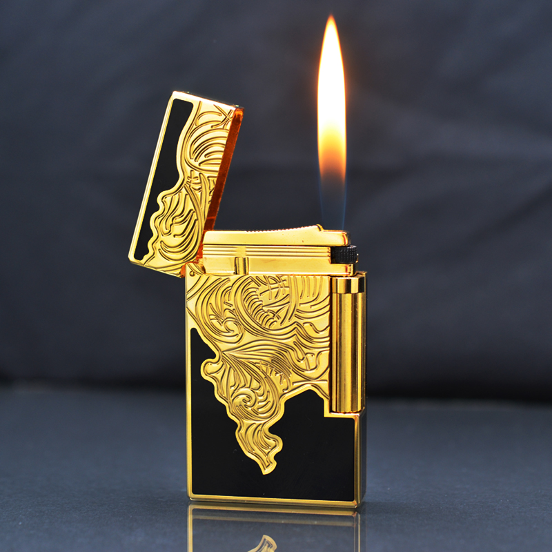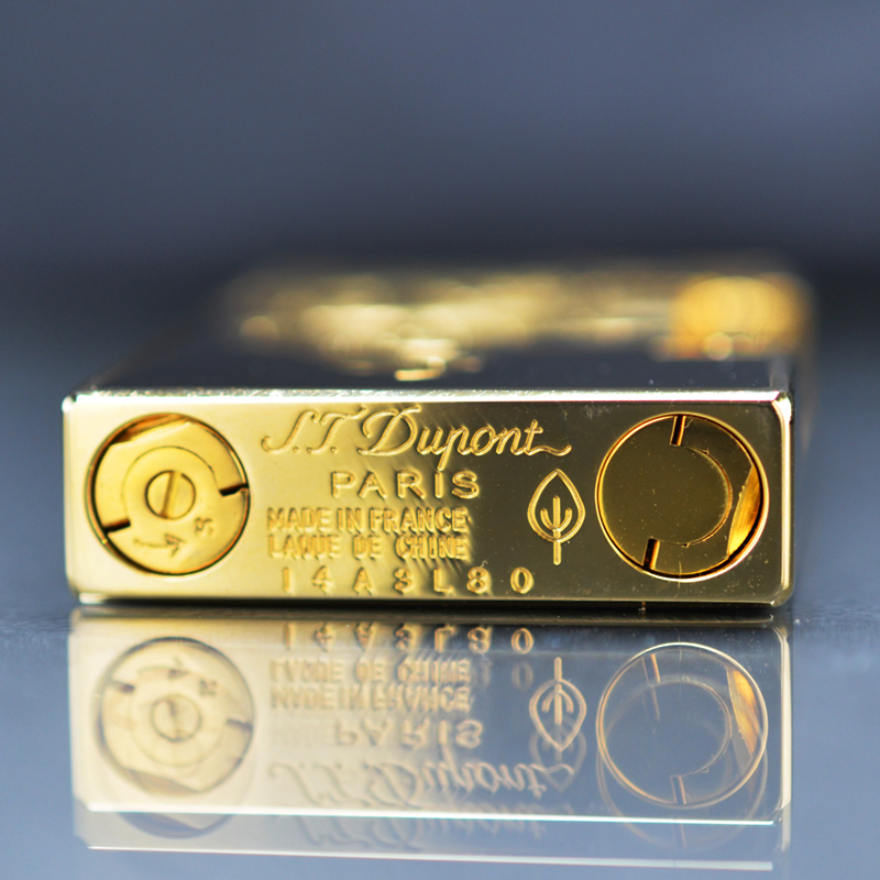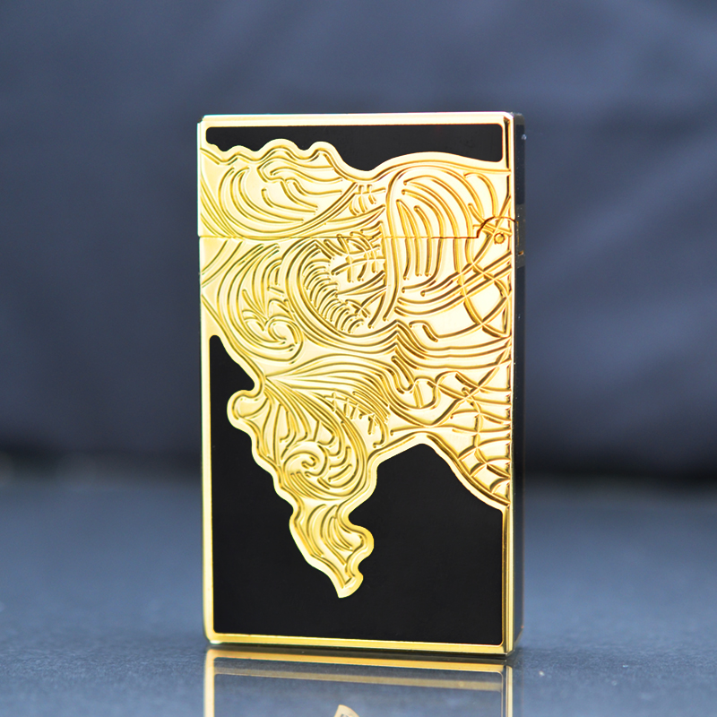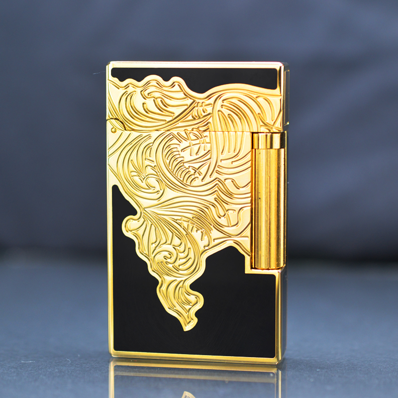 Hộp Quẹt Bật Lửa Dupont D103V Sơn Mài Họa Tiết Khắc Chìm Đen Vàng - Dùng Gas Đá Cao Cấp